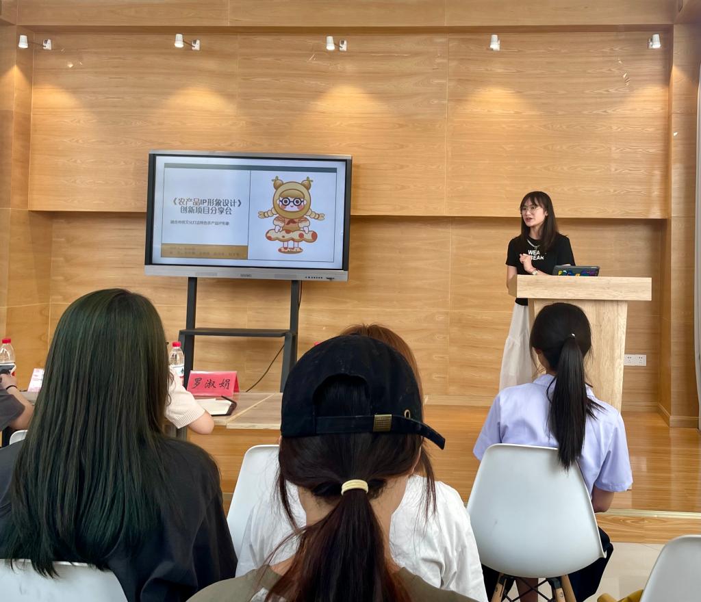交流活动中,尚立首先向在场学生讲述了如何撰写项目计划书,依次从BP亮点、框架、主体等多个方面进行了细致的讲解,接着对面向农村集镇的自创项目“广告伞:伞面传媒”进行了交流分享。陈晓露以团队创新项目“农产品IP形象设计”进行展示分享,以创新项目出发点为切入点,分别展示了以奉节脐橙为创新原型的多个农产品IP形象以及设计理念。随后,现场同学热情发言提问,两位优秀项目负责人耐心解答。