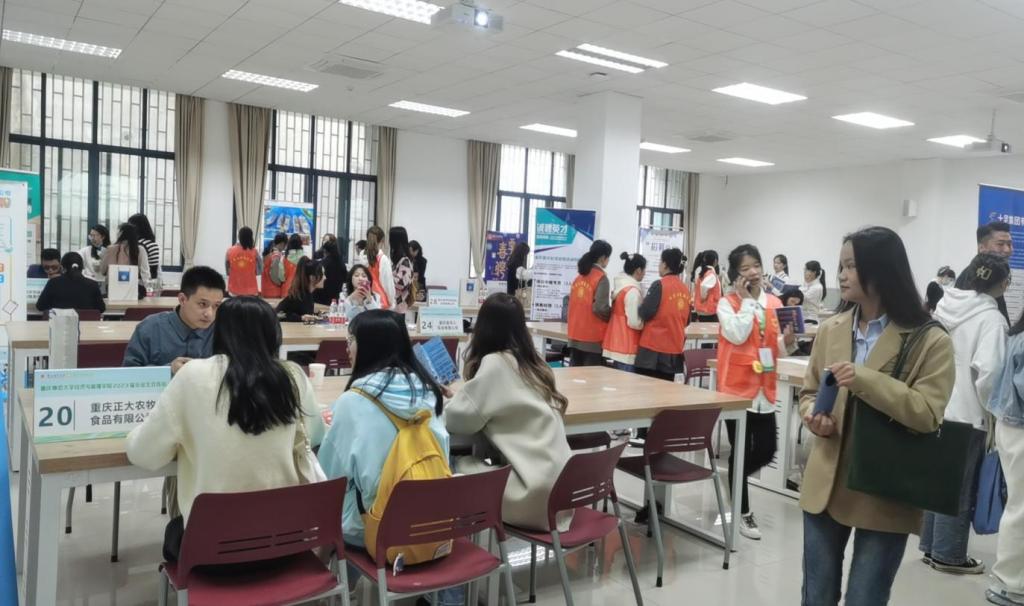学生专业适配度高达90%以上。双选会现场气氛热烈,500余名毕业生穿梭于各用人单位招聘展位前,主动与用人单位沟通交流,详细询问企业情况、岗位职责、福利待遇等相关信息,同时还结合自身优势和兴趣积极选择心仪的单位进行深入了解。部分企业简化招聘流程,现场进行面试,30余以上毕业生与用人单位达成初步签约意向。