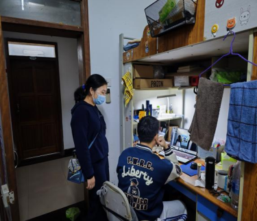 领导积极关心各个寝室同学的物资情况与心理状态,并不时和同学们相互打趣,气氛一片融洽;与此同时领导也督促同学们保证线上学习质量,要拥有一个积极向上的健康心态,情绪出现问题要及时反映。使学子们真正感受到情暖若春还,心安即是家!