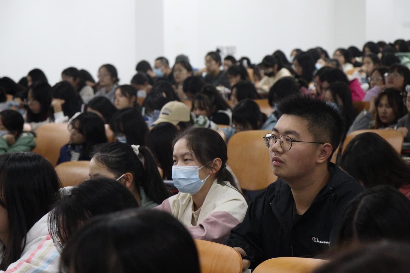 党委副书记李青松担任主讲人,辅导员李威老师出席讲座,2022级新生全体参与。