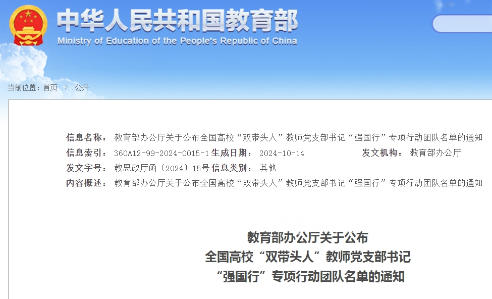 近日,教育部办公厅公布了全国高校“双带头人”教师党支部书记“强国行”专项行动团队名单,世界杯决赛